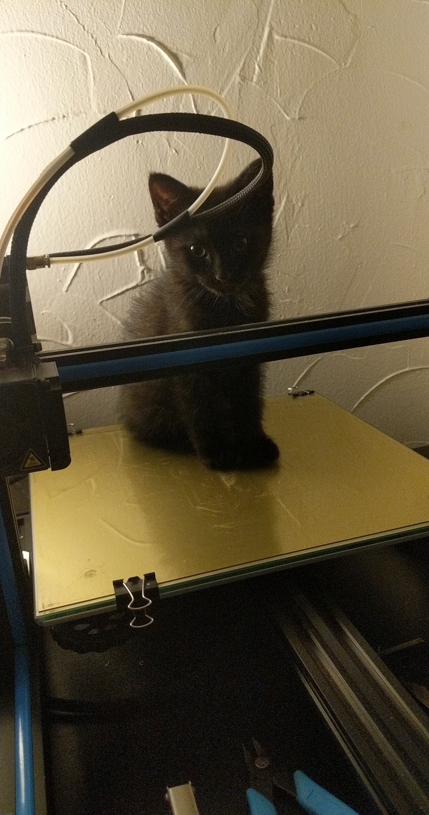 If you’ve made it this far, thanks for playing along! As a reward, here’s a picture of my roommate’s kitten sitting on my 3D Printer: